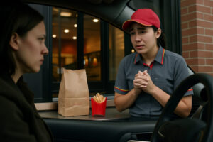例えば、ドライブスルーで商品を落としたスタッフが、すぐに笑顔で作り直してくれた話。