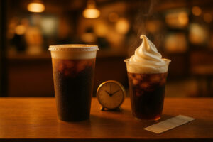 10:30〜翌1:00は“フロート開放時間”。ここに合わせられる日は、迷わずフロートへ。炭酸とバニラの境目で満足が跳ねます。時間外や急いでいる日はL炭酸が王道。氷量やストローの太さは店舗裁量なので、気になる人は会計前にひと言が最強です。
