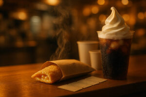ここはスパッと割り切りが正解。ホットアップルパイなどはカテゴリが“スイーツ”。一方で優待の「サイド券」=“セットのサイドに選べる商品”が前提なので、パイは引換対象外という案内が一般的です。だから甘さが欲しい日はドリンク券でフロートへ。注文の迷いも消え、満足はちゃんと上がる——このルートがいちばんスムーズ。