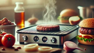 パティが薄いことで、中心までしっかり熱が届き、安全性とスピードを両立できる。