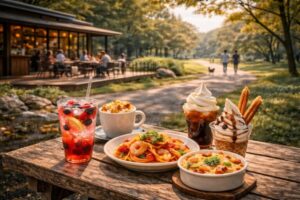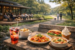 公園で食事が成立すると、滞在が自由になる。休日が一気に“太く”なります。 - 幸福で締めるなら:ソフト/フロート/チュロスサンデー