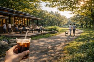 散歩のついでに“座らず一杯”も成立するのが、パークカフェの良さです。
