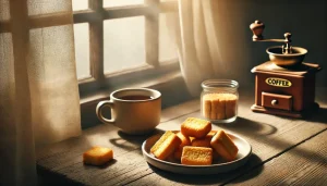それは、シャトレーゼのラスクを割る音。香ばしいバターの香りと、焼き立てパンの名残がふわりと重なる瞬間だ。