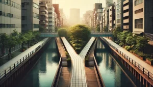 川沿いの風、ガラスに映る夕方の光、足取りが自然にゆるむ歩道。