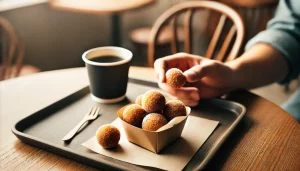 こういう商品、僕はかなり好きです。ドトールのレジ横まわりを見ていて、「ああ、こういう一品があるから通いたくなるんだよな」と思わせてくれる代表格のひとつが、黒糖ドーナツボール。大きなケーキを食べるほどではない。でも、コーヒーだけで終わるのはちょっと寂しい。その“あと少しだけ満たされたい”気分に、このサイズ感がものすごくハマるんです。