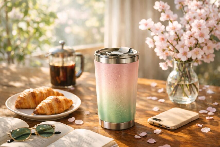 しかも、パステルカラーと繊細なアートワークが春っぽくて、見た目の気分の上がり方がすごくいい。容量は710mlとたっぷりで、アイスドリンク派にはかなり嬉しいサイズ感です。もちろん、色は選べないですし、冷たいドリンク専用、フタは完全密封ではありません。だからこそ、これは“どこへでも持っていく完全装備”というより、家やオフィスで春の一杯をちょっと楽しくするためのアイテムとして考えると満足度が高いと思います。