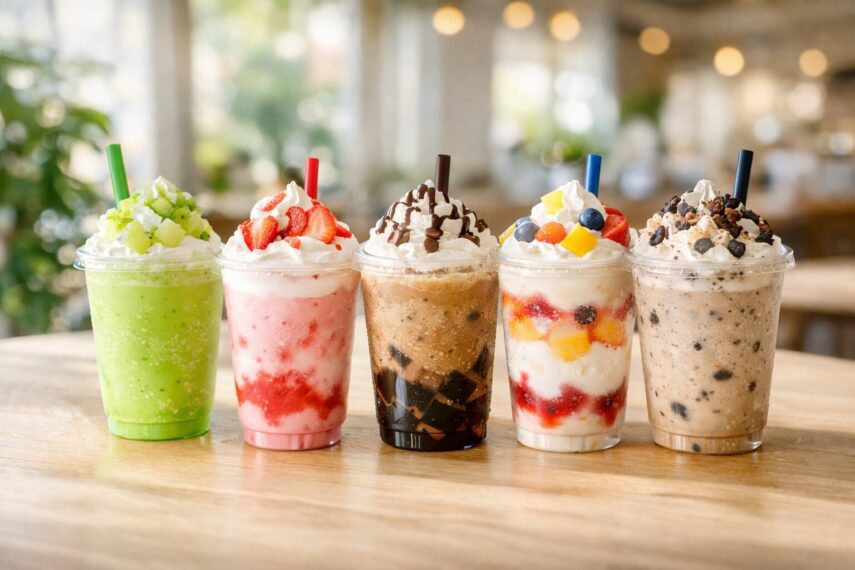 このあたりは、ひと口目から「今日はちゃんと満たされたい」に応えてくれそうなタイプ。ザクザクした食感や果肉感があると、ただ甘いだけで終わらず、飲んでいる時間そのものが楽しくなります。仕事や用事をひとつ終えたあとに「今日はちょっといい気分で帰りたい」と思った日、こういう一杯はかなり強いです。