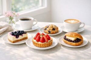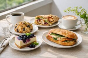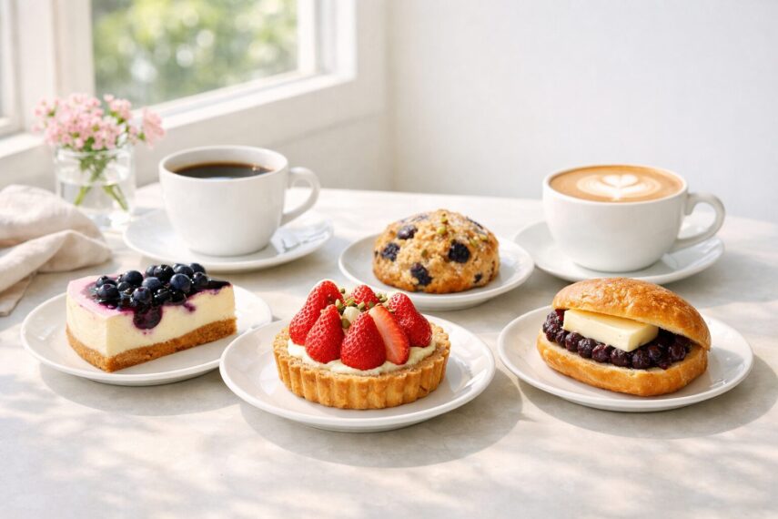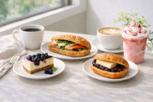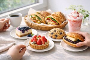 まず試しやすいのは、コールドブリュー コーヒー×ブルーベリースコーン、スマトラ×あんバタースコーンサンド、ケニア×オレンジケーキです。どれも相性がきれいで、「一緒に頼んで正解だった」と感じやすい組み合わせです。フード単体で選ぶのも楽しいですが、ドリンクまで合わせると満足度がぐっと上がるので、ここはぜひセットで楽しんでほしいところです。