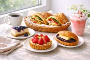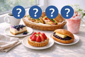 結論から先にいうと、今回まずチェックしてほしいのはストロベリーカスタードタルトブルーベリーレアチーズケーキあんバタースコーンサンドの3品です。華やかなご褒美感がほしい日ならストロベリーカスタードタルト。軽やかで後味のきれいな満足感を求めるならブルーベリーレアチーズケーキ。甘さと塩気のバランスに思わずもう一口いきたくなるのが、あんバタースコーンサンド。満足のベクトルがきれいに分かれているので、その日の気分に合わせて選ぶ楽しさがあります。こういう“選ぶ時間までおいしい”ラインアップ、僕はかなり好きです。