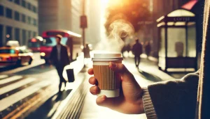 信号が青に変わる瞬間、手にした紙カップの蓋をそっと開ける。